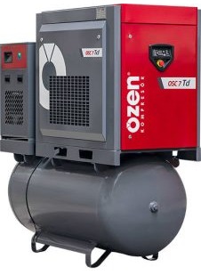 Denne kompressor fra Ozen er en beholdermonteret skruekompressor, som er designet til at opfylde luftbehovet hos små og mellemstore virksomheder såsom autoværksteder, reparationsværksteder, malerværksteder og byggebranchen.
