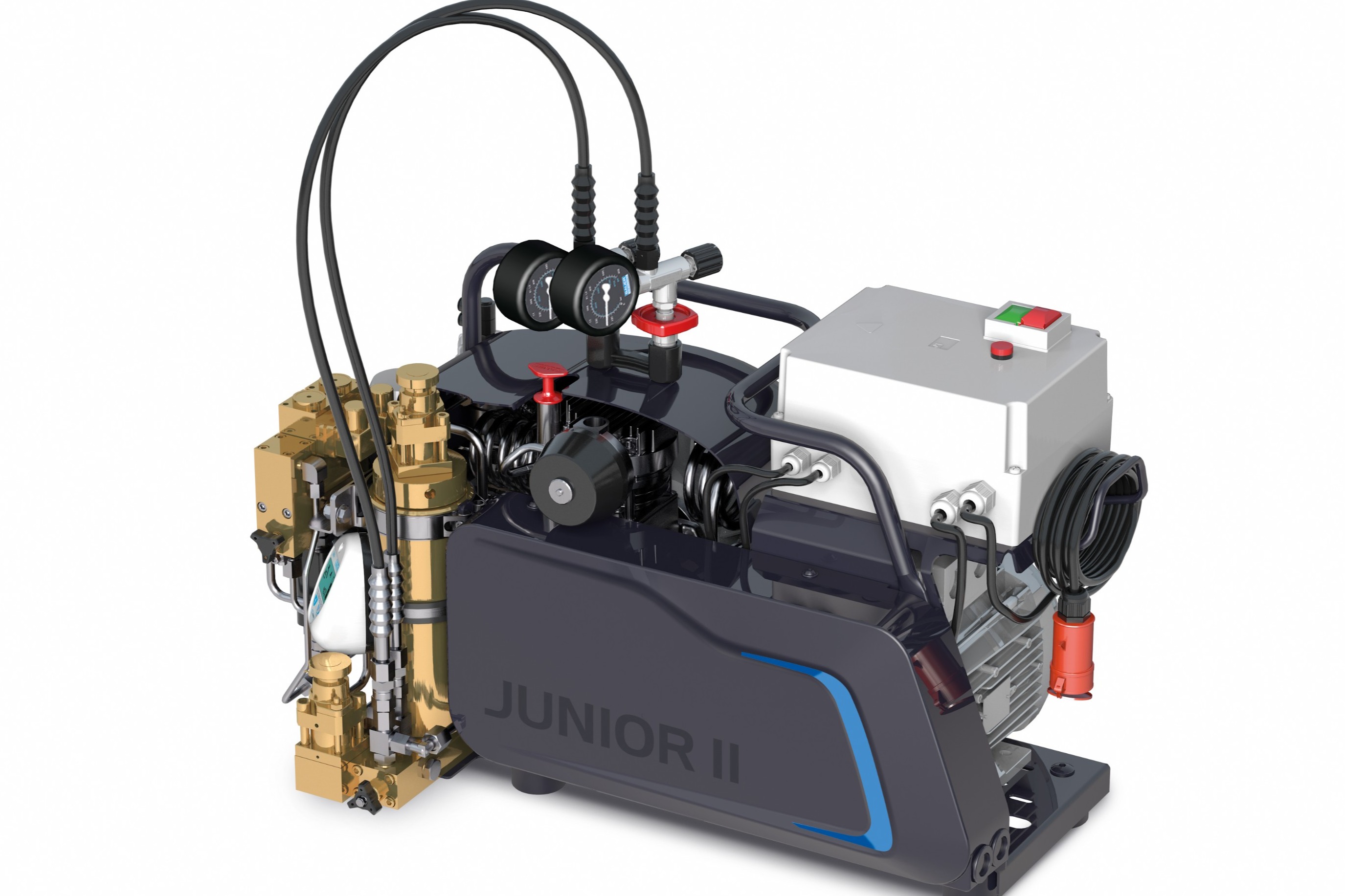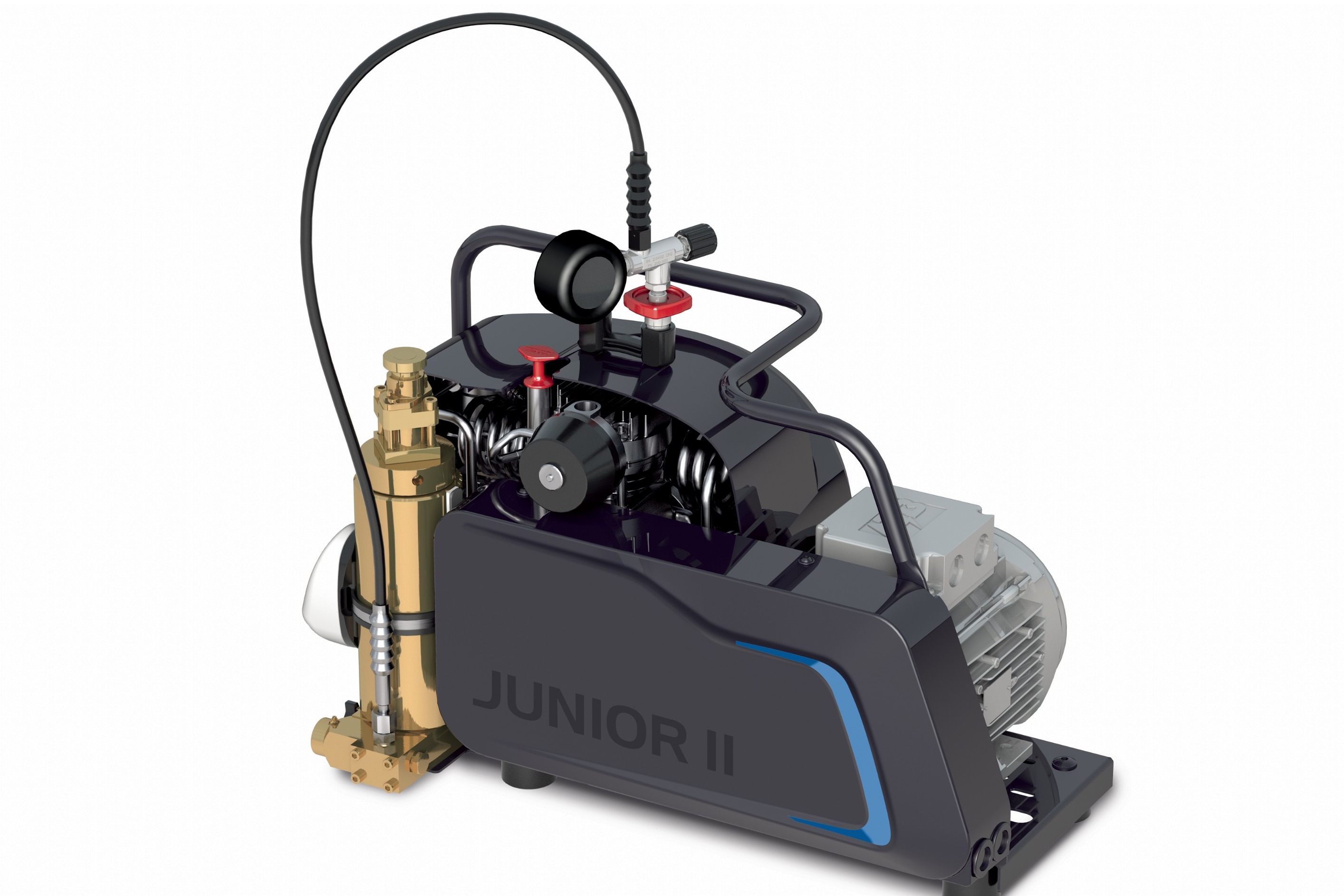 Junior II tilbyder nu et endnu mere kompakt design og talrige detaljerede forbedringer. BAUER’s patenterede og verdensførende TRIPLEX® filtersystem garanterer samtidig, at kompressoren leverer den reneste åndeluft i henhold til DIN EN 12021