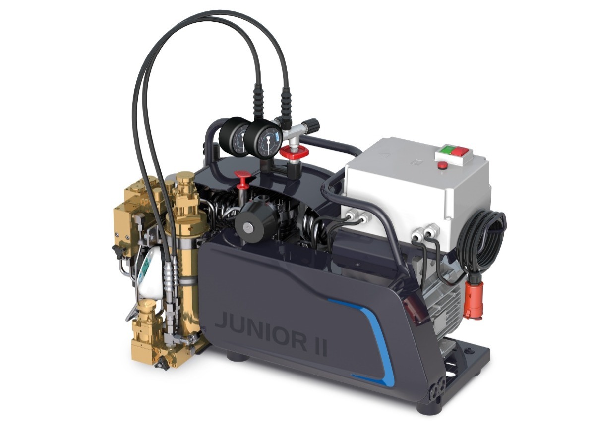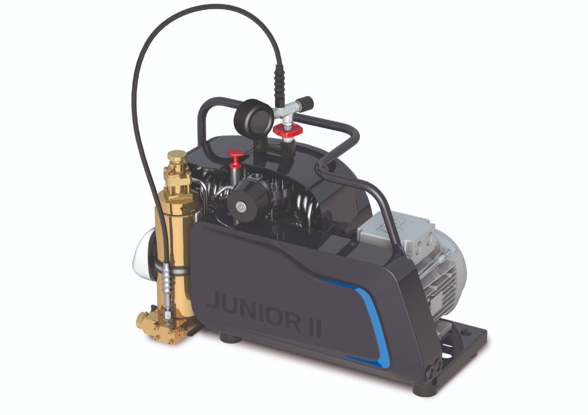 Junior II tilbyder nu et endnu mere kompakt design og talrige detaljerede forbedringer. BAUER’s patenterede og verdensførende TRIPLEX® filtersystem garanterer samtidig, at kompressoren leverer den reneste åndeluft i henhold til DIN EN 12021