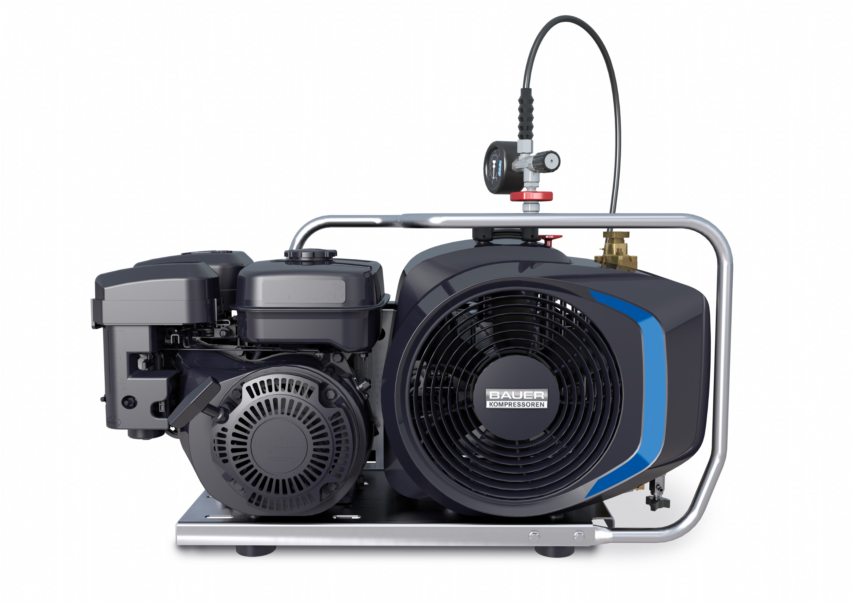 Det integrerede lavtryks oliesmøresystem øger levetiden for alle bevægelige dele på kompressorblokken. Den korrekte mængde olie bliver tilføjet til de forskellige kompressor trin. Oliestanden kontrolleres nemt ved hjælp af oliepinden. Den specielle cylinder, og de slidstærke stempelringe i sidste trin, minimerer driftsomkostningerne. Kompressoren kan køre på hældende overflader op til 30° (op til 20° for benzin-motorer).